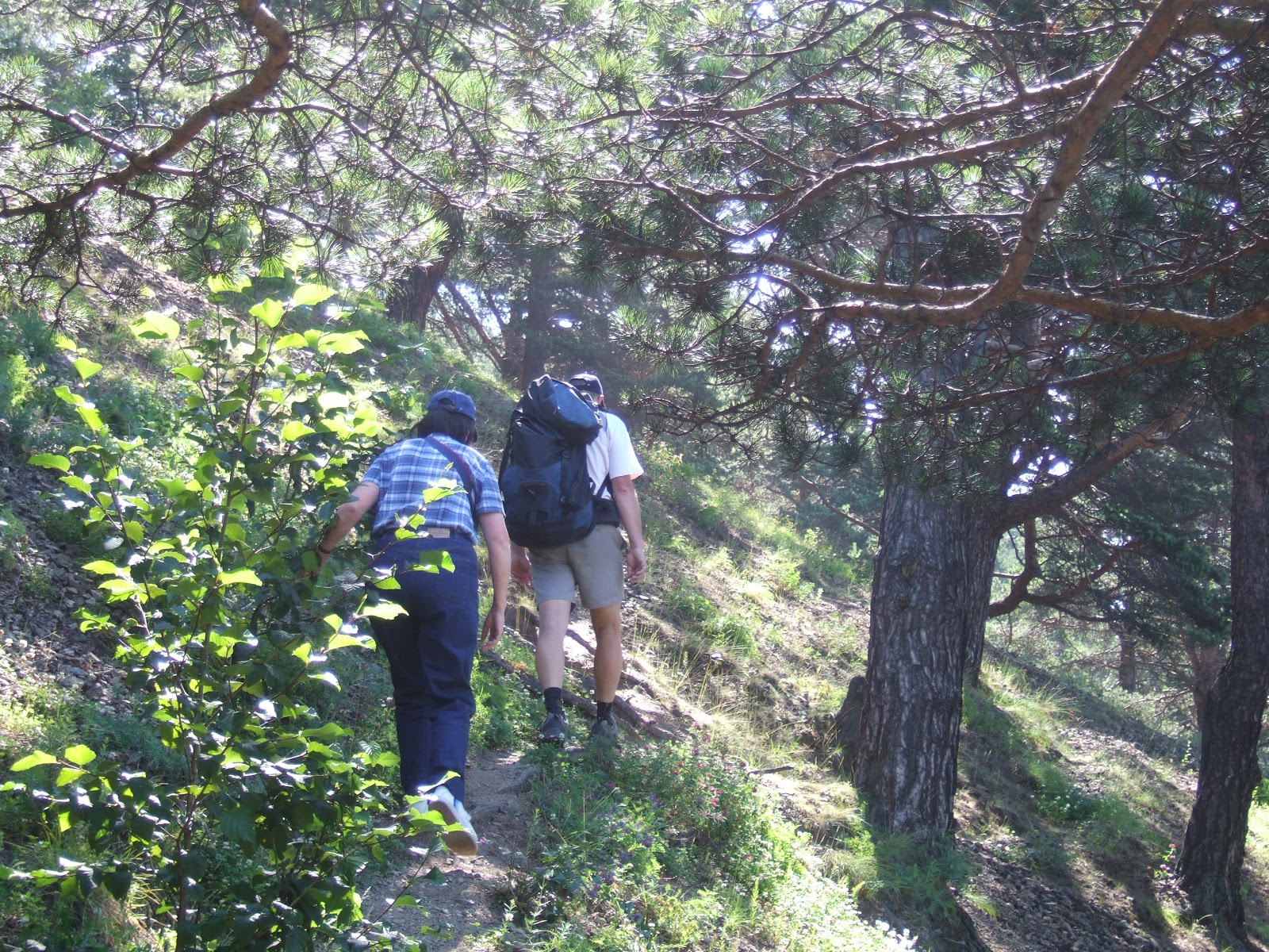 Sacha told us he too was once a Maths teacher. ‘The Soviet times were the best’ he said. ‘When they ended I worked for three months and never got paid.’ He gave up teaching and became a mountain guide. He does not earn much, he said, but he likes being out in the fresh air. When we came to a clearing full of purple clover Sacha pulled a bag from his rucksack and began collecting the flowers. We helped him, though not entirely sure why he was doing it. ‘It’s for my mother,’ he explained, ‘she soaks the flowers in vodka. A daily glass of clover-flavoured vodka is better medicine than you can get from any doctor.’